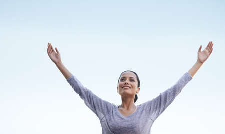 Taking in everything nature has to offer. A beautiful young woman standing outside with her arms outstretched.