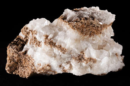 sample of raw colorless calcite mineral on black background close up from Dalnegorsk, Primorye, Russia
