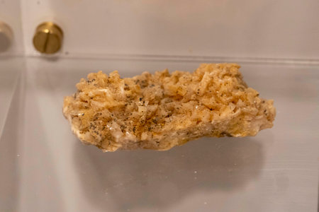 Dolomite (crystallized) ollection stone on display (selective focus).