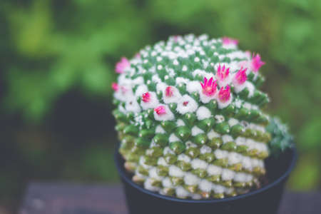 Cactus flowers, Mammillaria schiedeana with pink flower is blooming on pot, Succulent, Cacti, Cactaceae, Tree, Drought tolerant plant.