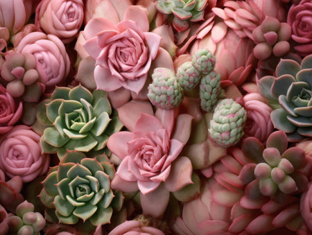Collage of pink, green, and brown succulents. Illustration Generative AI