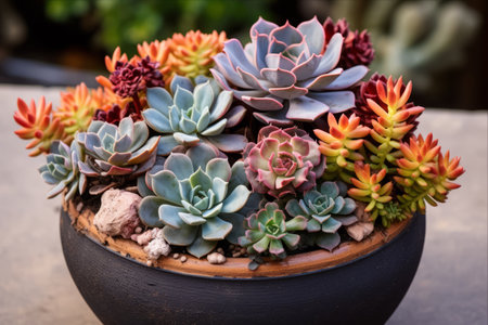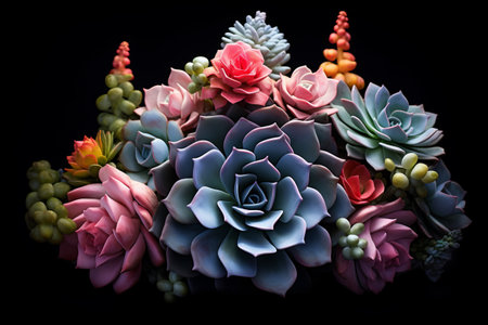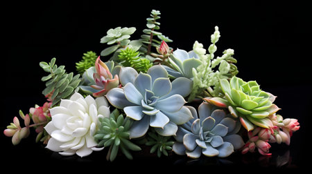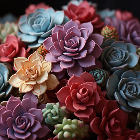 An assortment of succulent plants, arranged in an artistic assortment of colors, AI-generated.