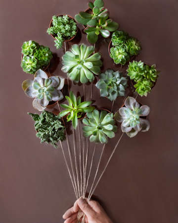 Creative Succulent plants from above like a balloon