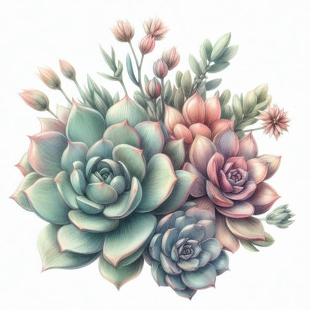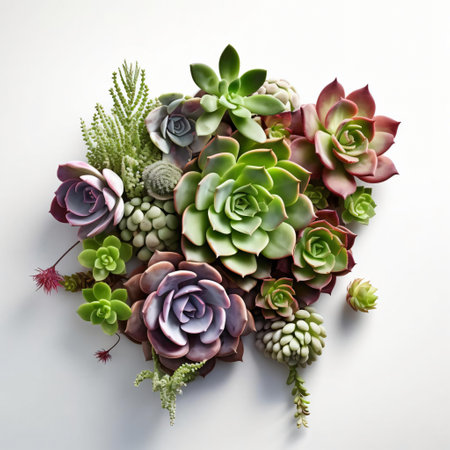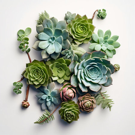 An AI generated illustration of succulent plants on a white surface
