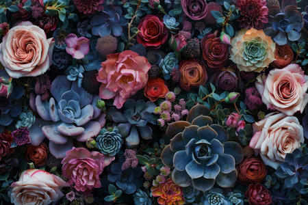 This stunning image showcases a vibrant collection of succulents and flowers, perfect for enhancing home decor or creative projects. The colorful arrangement provides a fresh and elegant aesthetic appeal.