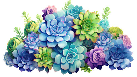 An AI-generated illustration of lush green succulents growing against a white background