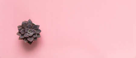 Banner with a beautiful succulent on a pink background. Background for your text or design. Selective focus.