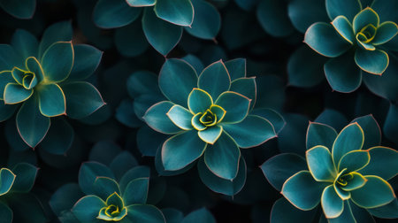 A stunning close-up of green succulent plants featuring unique yellow edges. This natural composition highlights the beauty and tranquility of botanical life. Ideal for nature-themed projects.