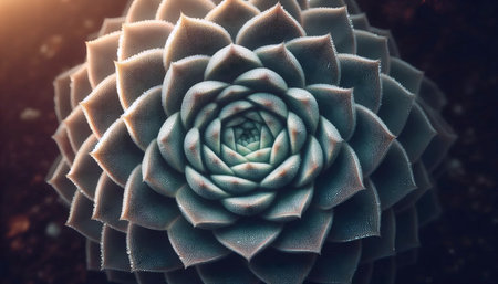 Close up of succulent plant with fleshy leaves in geometric spiral