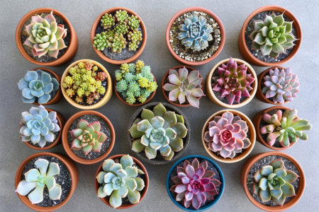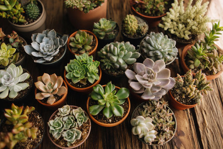 An overhead shot showcasing beautifully arranged succulent plants in terracotta pots, perfect for adding a touch of nature to indoor spaces and enhancing home aesthetics.