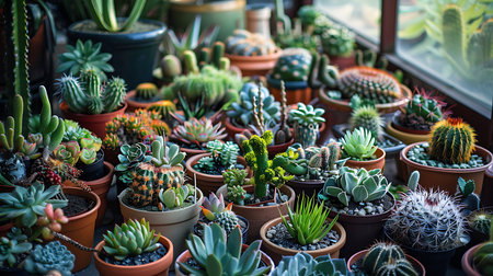 A lush indoor oasis of various succulents, each nestling in classic terra cotta pots, basks in the gentle light near a window.