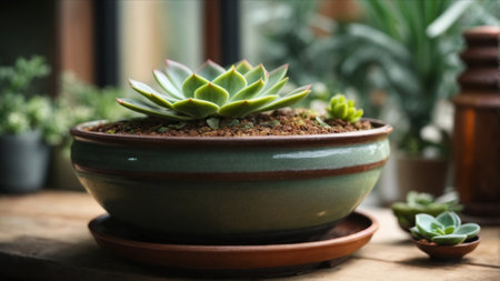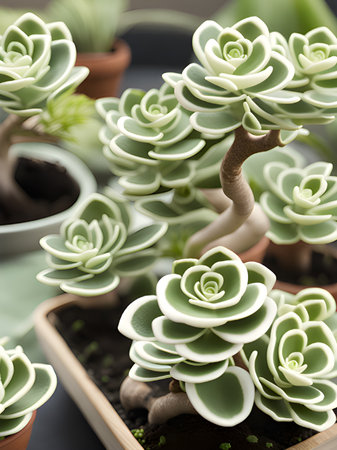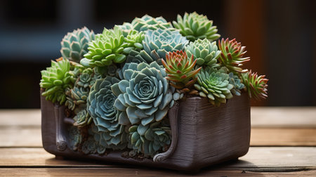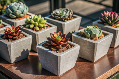 potted succulent garden, with different varieties of the plants arranged in various containers, created with generative ai