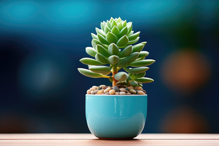 AI Generated. Pink Succulent in Teal Pot on a Textured Background