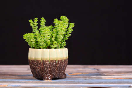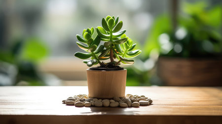 Healthy crassula plant jade plant thriving in a stylish pot inside a cozy, welldecorated living space