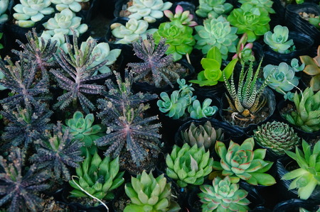 Succulent flower beds plant in the garden. This is a species of cactus family that is resistant to extreme weather and is decorated in the home