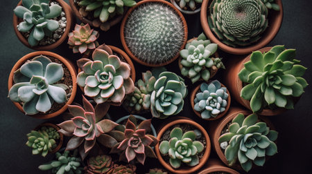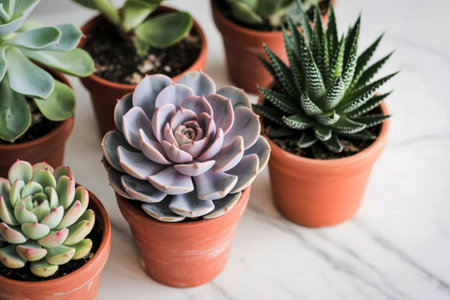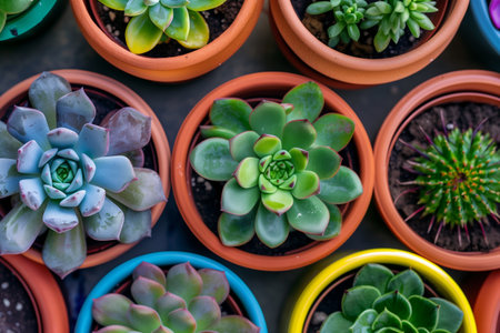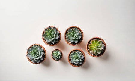 An overhead shot showcasing beautifully arranged succulent plants in terracotta pots, perfect for adding a touch of nature to indoor spaces and enhancing home aesthetics.