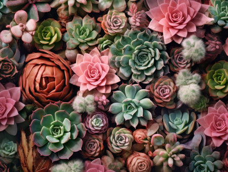 Collage of pink, green, and brown succulents. Illustration Generative AI