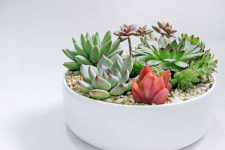 colorful succulent plants in white pot