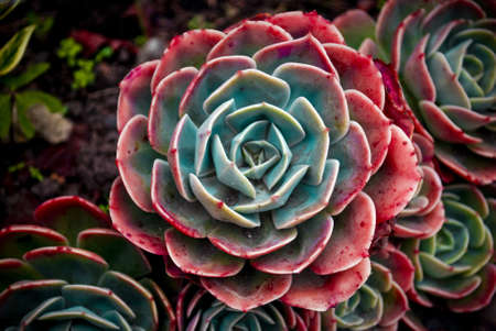 Close-up of a bunch of succulent plants in the ground