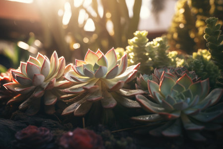 Close-up photo of a vibrant succulent Echeveria plants garden