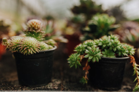 Miniature succulent plants in the botanical garden, nature background