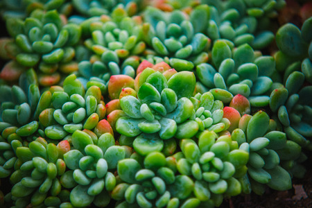 Colorful succulents background, close-up, selective focus
