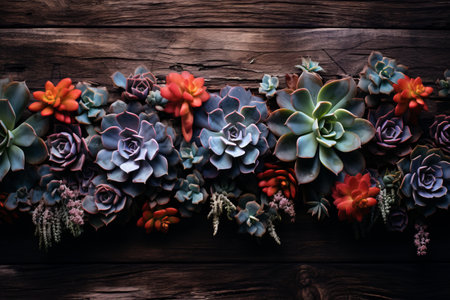 This stunning arrangement features a variety of succulents and vibrant flowers against a dark background, perfect for artistic and design purposes.