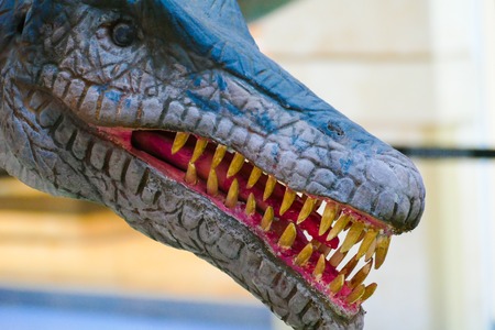 Archosaur dinosaur. Realistic figure of an Archosaur dinosaur inforest park in Kazimierz Sosnowiec. Prehistoric predator fascinating element of the landscape. Wawel Dragon. Dragon from Lisowice.