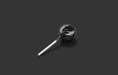 Blank black lollipop wrap mockup lying, dark background