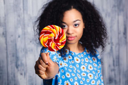 Funky afro lady with lollipop, funny girl,