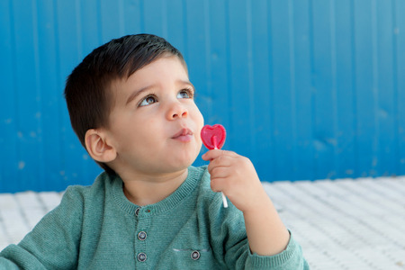 Lovely boy holding a lollipop