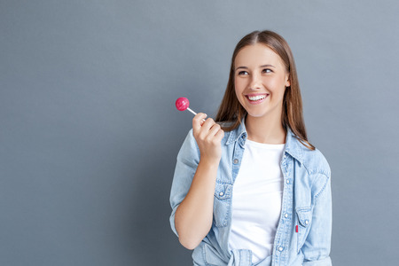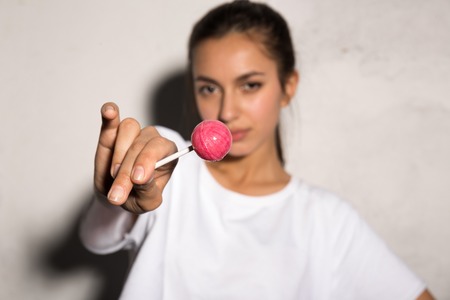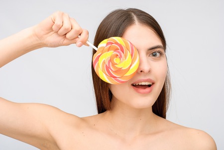 The young woman with colorful lollipop