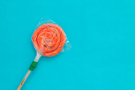 Colorful Lollipop isolated on a blue background. Copy space.