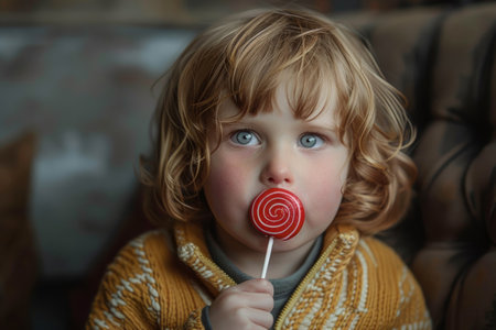 A girl enjoying a vibrant red lollipop, highlighting the sugary texture
