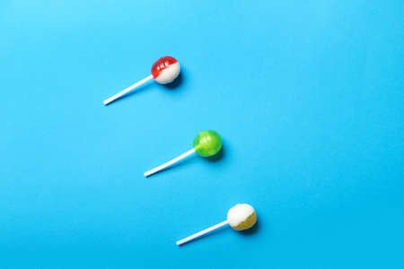 Tasty lollipops on blue background