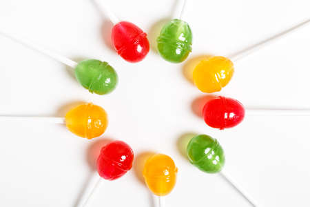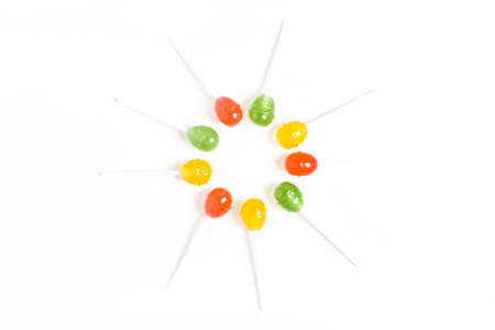colored lollipops on a white background. candy concept for kids. minimalism.