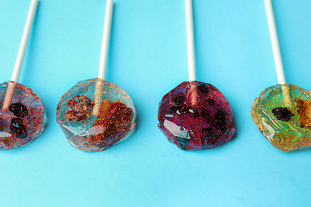 Different lollipops on turquoise background