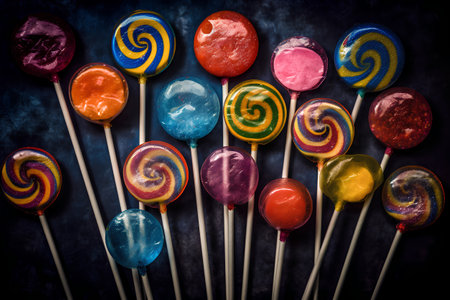Colorful lollipops on a stick on a dark background