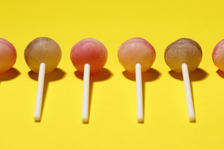 Ball lollipops on a yellow background.