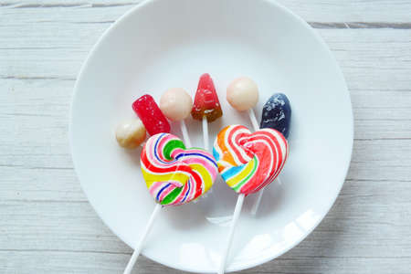 The sweet lollipops of the children on the table