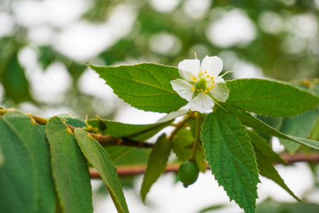 Delicate flower blossom amidst green foliage - nature's beauty on display.