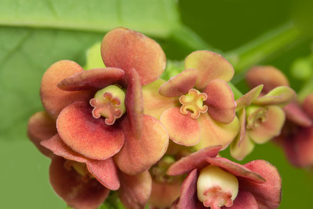 Australian native oregano prostanthera rotundifolia round leaf mint bush plant outdoor in beautiful tropical backyard shot at shallow depth of field