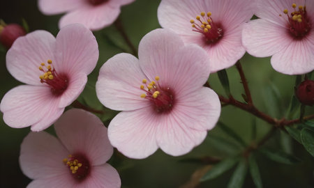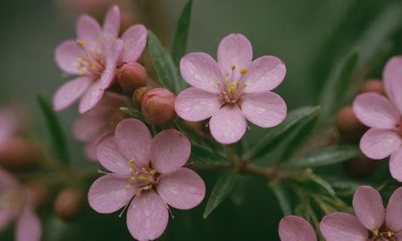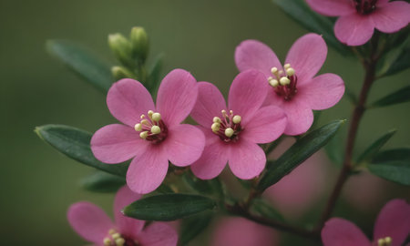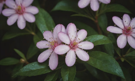 A stunning arrangement of vibrant green leaves adorned with delicate pink flowers, showcasing the beauty of nature in a tranquil, lush environment.