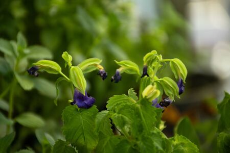 Blue-purple Vitex rotundifolia flowers bloom on the beach