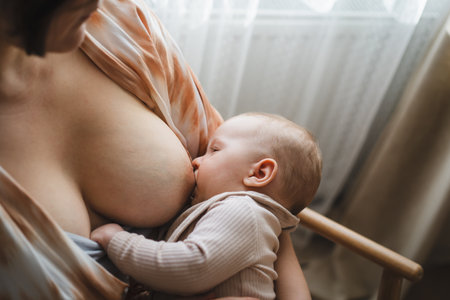 Breastfeeding baby in perfect and comfortable position