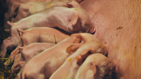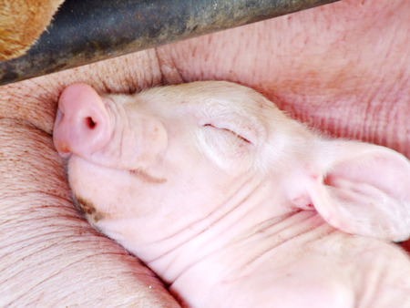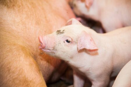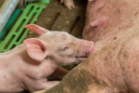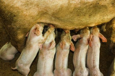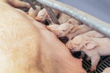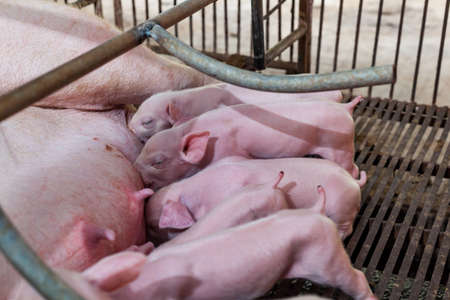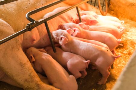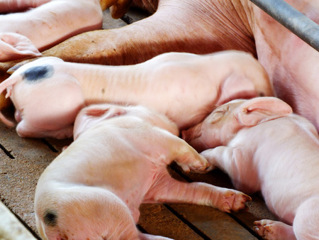 Newborn piglets need milk from the sow. ,Receiving newborn milk to build immunity , the swine industry