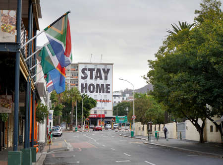 Cape Town, South Africa - 6 April 2020 : Empty streets and stay home sign in Cape Town during the lockdown