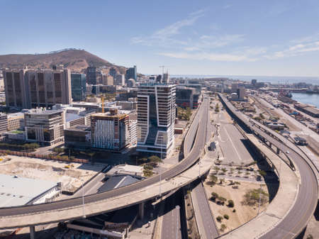 8 April 2020 - Cape Town, South Africa : Aerial view over Cape Town during Covid-19 lock down, with empty streets
