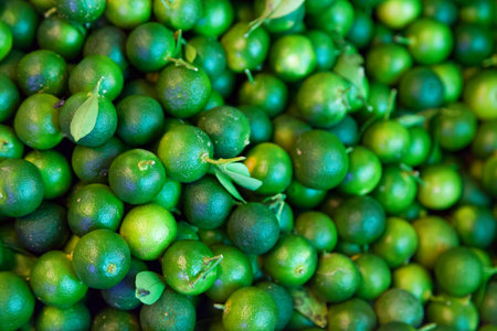 Fresh Limes pile sell in traditional market indonesia. Selective Focus. beautiful healthy