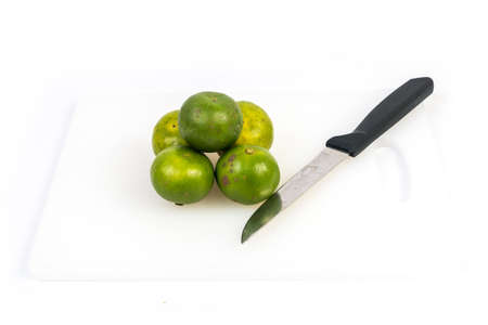 bunch of fresh limes on a white background, this photo was taken at the market